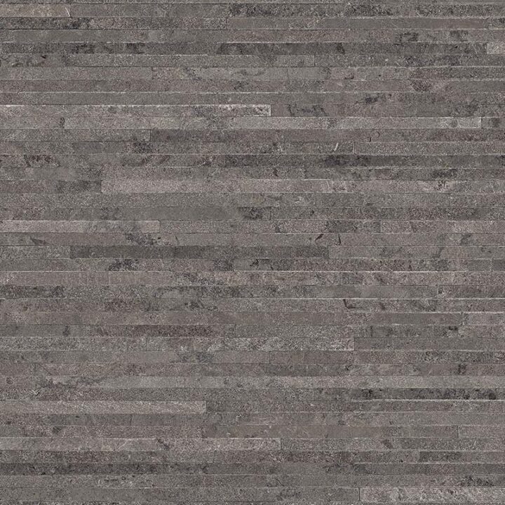 London Stone Midnight Groove is an ancient limestone-look porcelain. This tile offers unmatched aesthetic and technical qualities. Available in five shades, the London Stone Collection features two main styles: Cross Cut for a mottled appearance and Vein Cut for a sleek striped effect. The striking Groove decor adds a three-dimensional touch, enhancing the collection’s versatility.
