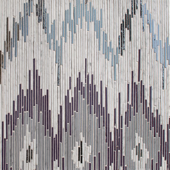 Loom, a handmade mosaic shown in Viola and Mercury Glazed Basalto™ with Carrara and Bardiglio from the Fall 2020 collection by New Ravenna for Decorative Materials. - NOTES