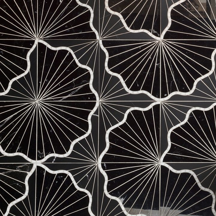 Lotus Bloom Petite 2 is made up of Nero Marquina (Polished), Nero Panthera (Honed) and White Thassos Extra (Polished).- NOTES