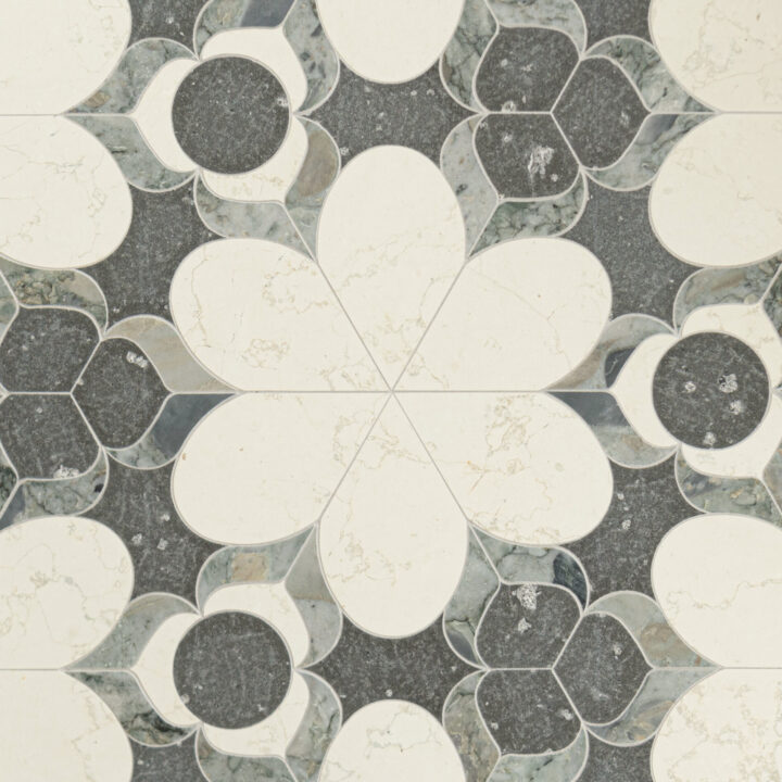 The Luca Oyster waterjet mosaic is from the San Marco Collection by New Ravenna for Decorative Materials. This collection, designed by Jacquelyn Bizzotto, pays homage to the enchantment of Venice, drawing inspiration from the characteristics of the Lagoon city.
