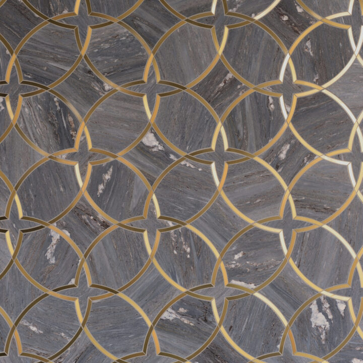 Moscow Petite Signature Bold is a geometric statement mosaic from the Signature Quick-Ship Collection. This collection takes 12 top signature designs and gives them an elegant upgrade with high-performance gold stainless steel. It maintains the same standards of custom mosaics but with the shortest possible lead time.