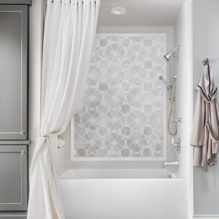 Peony Botanica is our exclusive waterjet mosaic collection by O’Neil Ruppel Surfaces. Inspired by sinuous organic patterns found in nature and composed of the most beautiful hand-selected white and gray marbles, the designs interlock to form an elegant mosaic motif. A perfect way to enhance any space, be it an accent wall, floor, kitchen, or bathroom space.