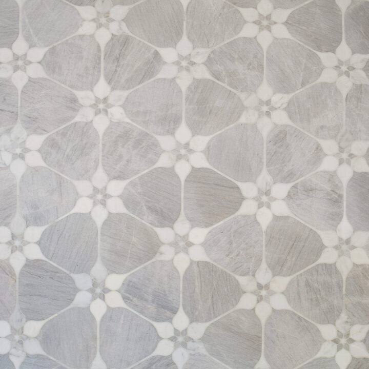 Queenannes Botanica is our exclusive waterjet mosaic collection by O’Neil Ruppel Surfaces. Inspired by sinuous organic patterns found in nature and composed of the most beautiful hand-selected white and gray marbles, the designs interlock to form an elegant mosaic motif. A perfect way to enhance any space, be it an accent wall, floor, kitchen, or bathroom space.