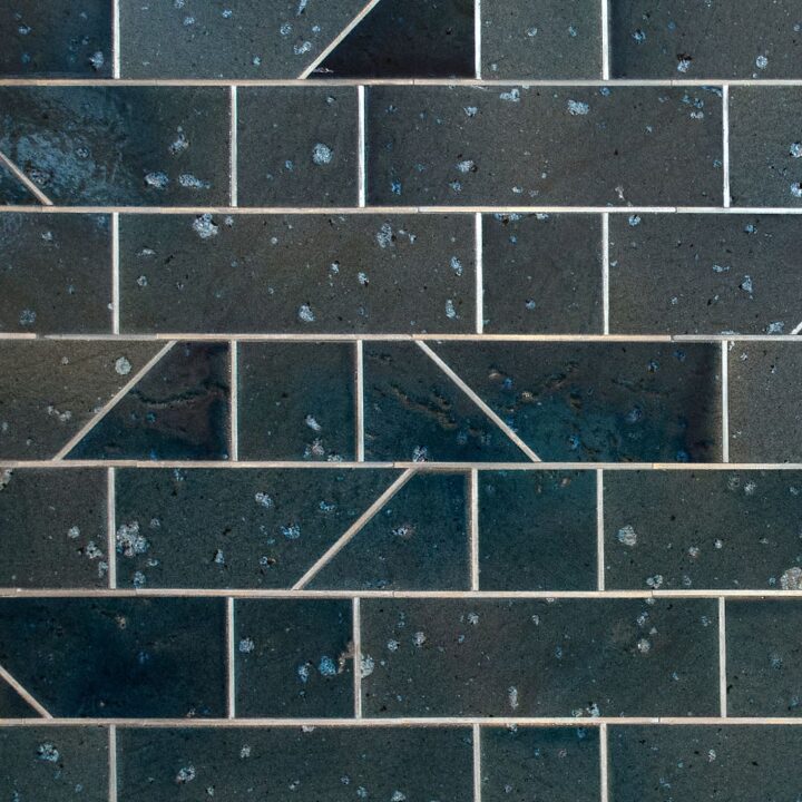 Quintin is a Jazz Age interpretation of subway tile with zinc liners. Shown in honed Orchid Glazed Basalto™ with Zinc liners, this pattern is part of the Bright Young Things® collection by New Ravenna for Decorative Materials.