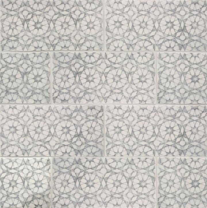 Inspired by the ancient technique in which a surface layer is scratched to reveal a ground of contrasting color. The Scraffito Collection features a variety of patterns, each handmade and handglazed in the US. Installation photo by Fine Focus Photography.