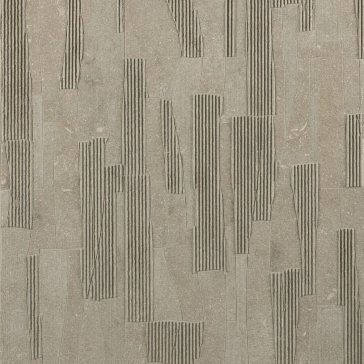 Discover Sculpta By Ali Budd Waterjet Mosaic from the Tailored To Collection by Artistic Tile. This mosaic is composed of vertical lines and fluid forms that create a sense of movement. Dimensional carving introduces texture, resulting in a surface that is architectural yet tactile. As a Tailored To product, Sculpta can be fully customized in your choice of materials and colors. Sold as a 4-part module of interlocking A, B, C, and D sheets, with a coverage area of 4.63 sf/unit.