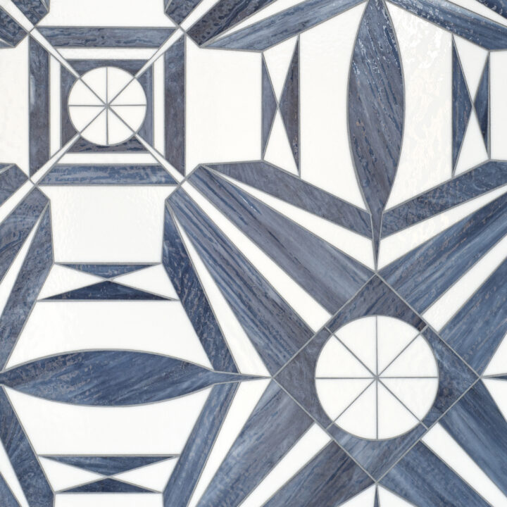 Tour Eiffel is a waterjet glass mosaic shown in Absolute White and Zircon.