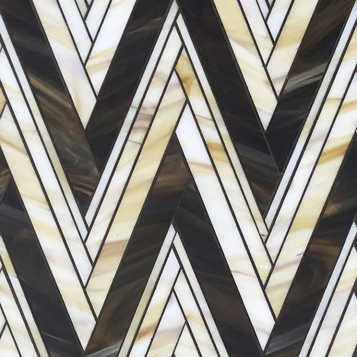 The Truffle glass mosaic is from Allison Eden’s Ready to Wear mosaic collection. The Ready To Wear line is a collection of in-stock, handmade glass mosaic tiles. Each pattern represents a favorite style developed over 30 years of Allison’s glass mosaic experience. These great interlocking tiles, including the Truffle mosaic, are currently in stock and available at competitive prices.