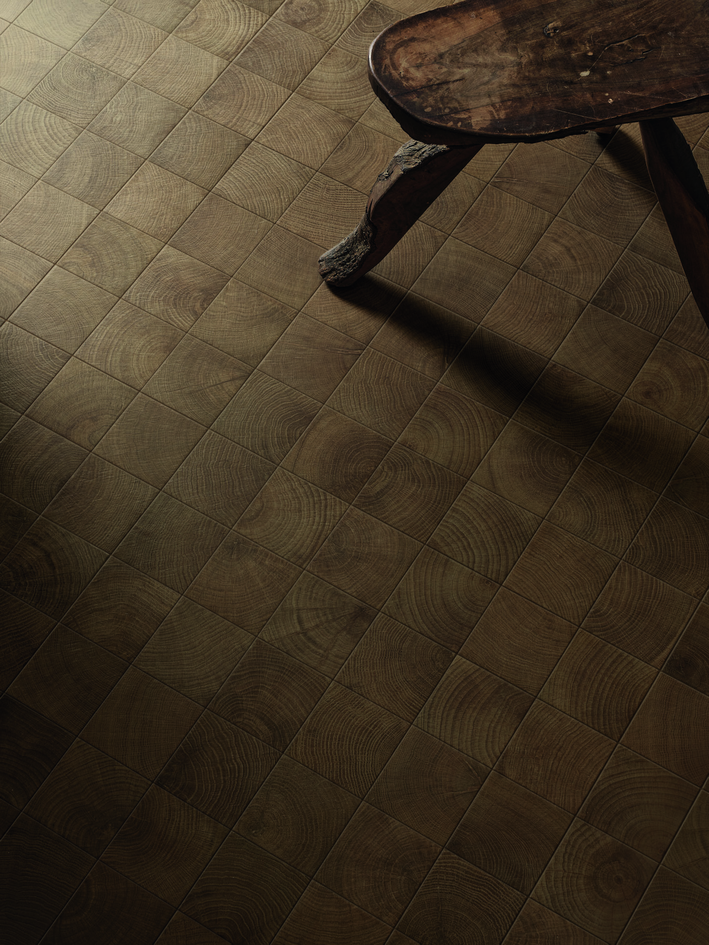 W-Circles Wengè 4″ x 4″ captures the timeless beauty of natural wood, reinterpreted in porcelain with exquisite Italian craftsmanship. Each tile reveals layered grain patterns inspired by the rings of a tree—symbols of growth and time. Rich walnut tones bring warmth and depth, creating a surface that feels organic yet refined.