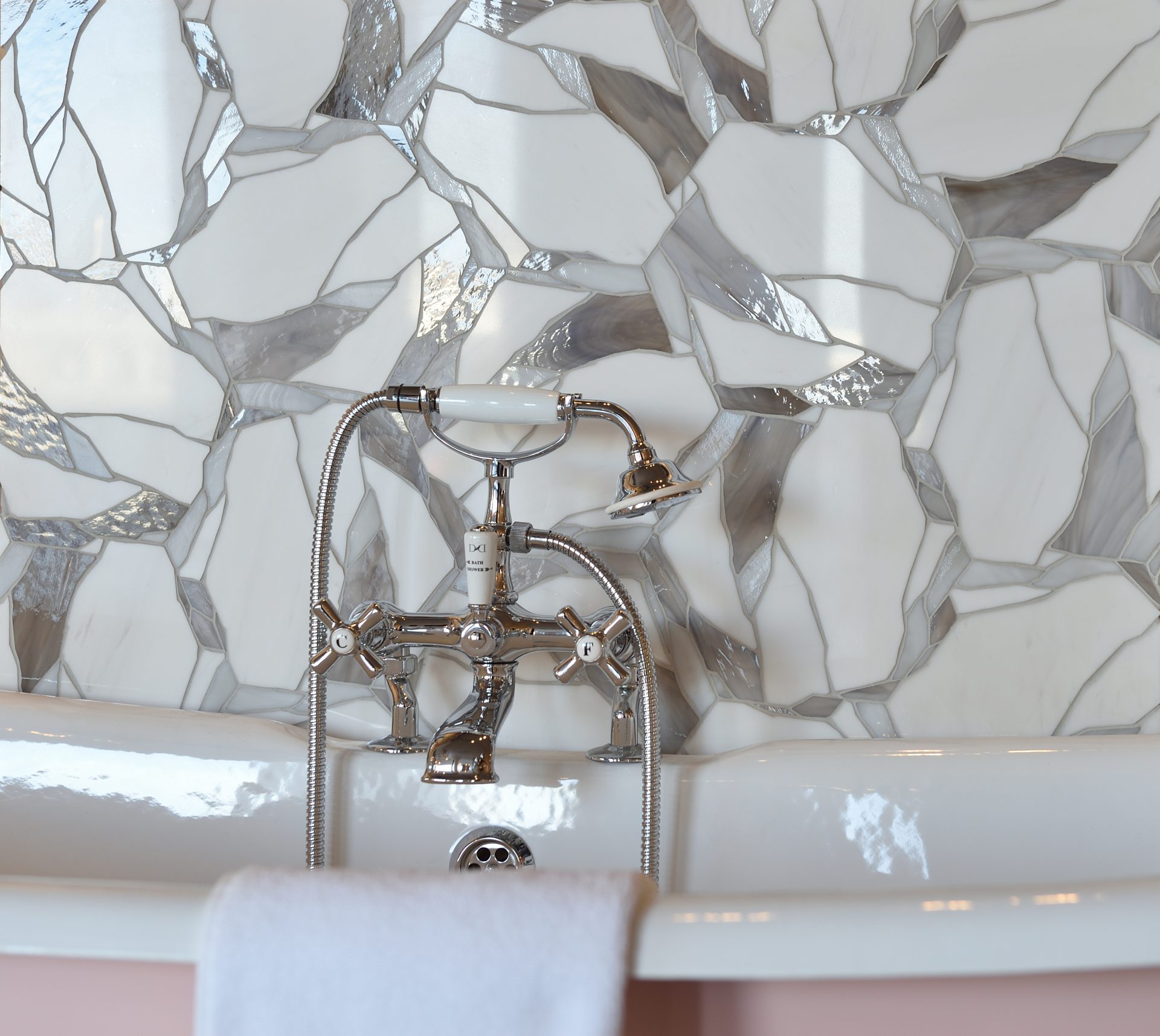 Whether in vibrant hues or delicate tints, the Gem Glass Collection offers a unique touch to any design. You can choose to feature Gem glass on its own or elevate its beauty with any of our other materials: natural stones, Venetian glass, metal, terrazzo, or mother of pearl. Whatever you choose, Gem glass can enhance, contrast, or complement its partner.