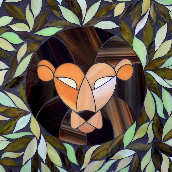 Wild Ones Glass, a waterjet mosaic from the Kiddo Collection® by Cean Irminger. This dark colorway mosaic features friendly jungle animals including lions, tigers, toucans, monkeys, and more!