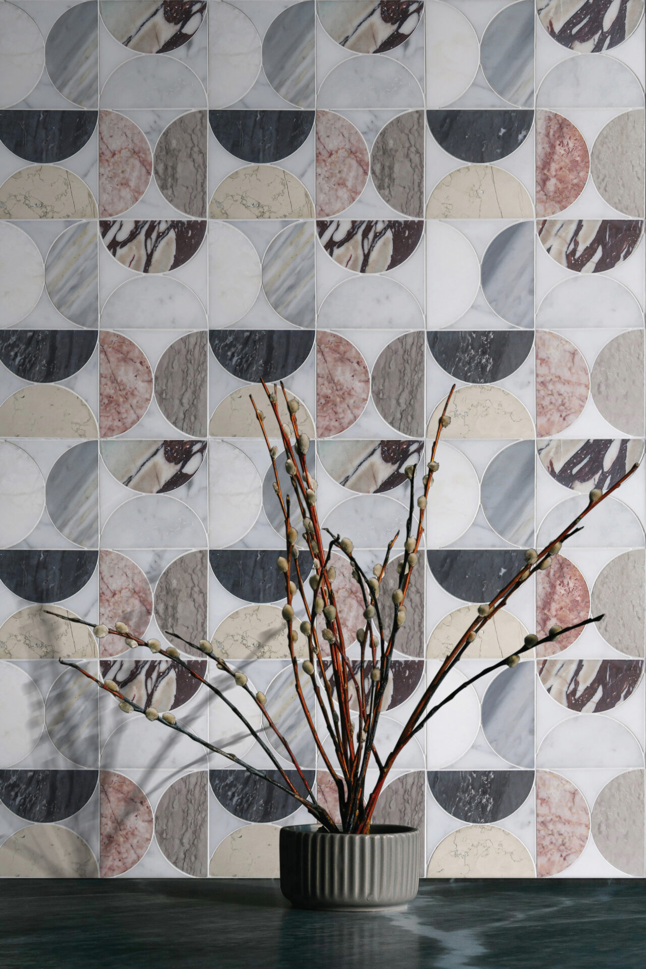 Elevate your space with the sophisticated charm of the Willow mosaic tile, part of the exclusive Uniek Marble collection. This geometric masterpiece blends refined tones of blush, ivory, charcoal, and warm grey in a striking chevron and block pattern. Crafted from premium marble, each piece is meticulously cut and polished to reveal the natural veining and unique coloration of the stone. Whether used as a statement backsplash, an accent wall, or elegant flooring detail, Willow delivers a balance of contemporary edge and timeless luxury. Its polished finish enhances light reflection, adding depth and dimension to any interior.
